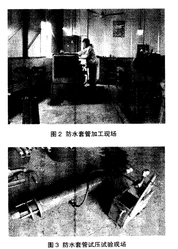 與現(xiàn)有技術相比,本次研究發(fā)明的防水套管止水效果好,首次使用在非金屬管穿底板上,并且效果顯著。防水套管加工現(xiàn)場如圖2所示。